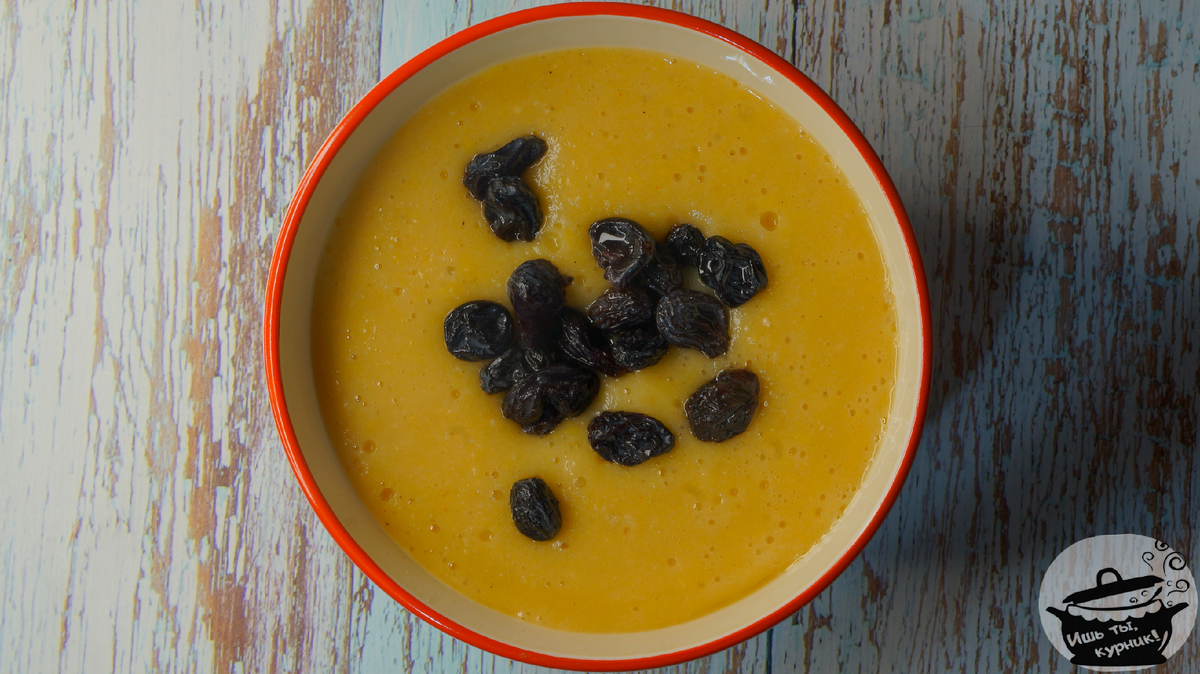 Ингредиенты: · горох колотый - 1 ст. · изюм - 1 горсть · масло слив. - 50 гр.; · соль - 1 щепотка; · имбирь молотый - 1/4 ч.л., · мускатный орех молотый - 1/4 ч.л.; · шафран - 2 цветка. Приготовление: горох замочить на ночь, промыть, отварить в небольшом количестве воды, слить. Изюм замочить в горячей воде на 10 минут. Перебить блендером до однородной массы, добавить масло, изюм, соль и специи, развести мясным бульоном до желаемой густоты, дать закипеть ещё раз. Приятного аппетита!
