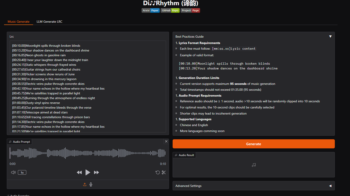 Честно говоря, сначала я ожидал стандартный сервис — очередной инструмент, который обещает больше, чем может дать. Но то, что я обнаружил, оказалось настоящим открытием. Suno долгое время был лидером в мире музыкальных ИИ, но китайский DiffRhythm предлагает бесплатный доступ и такие возможности, что я всерьез задумался: а нужен ли теперь Suno? В этой заметке поделюсь своим опытом и расскажу, почему это стоит вашего внимания. DiffRhythm — это бесплатный сервис от китайских разработчиков, который генерирует музыку с вокалом и инструменталом. Его главная фишка — скорость: он создает 4-минутную композицию всего за 10 секунд. Когда я впервые услышал об этом, то решил проверить, насколько такие заявления близки к реальности. Оказалось, что это не просто громкие слова — сервис действительно работает так, как обещают. Я загрузил текст песни, выбрал музыкальный стиль и нажал кнопку «генерировать». Признаться, ждал результата с некоторым скептицизмом — обычно такие инструменты выдают что-то сыро