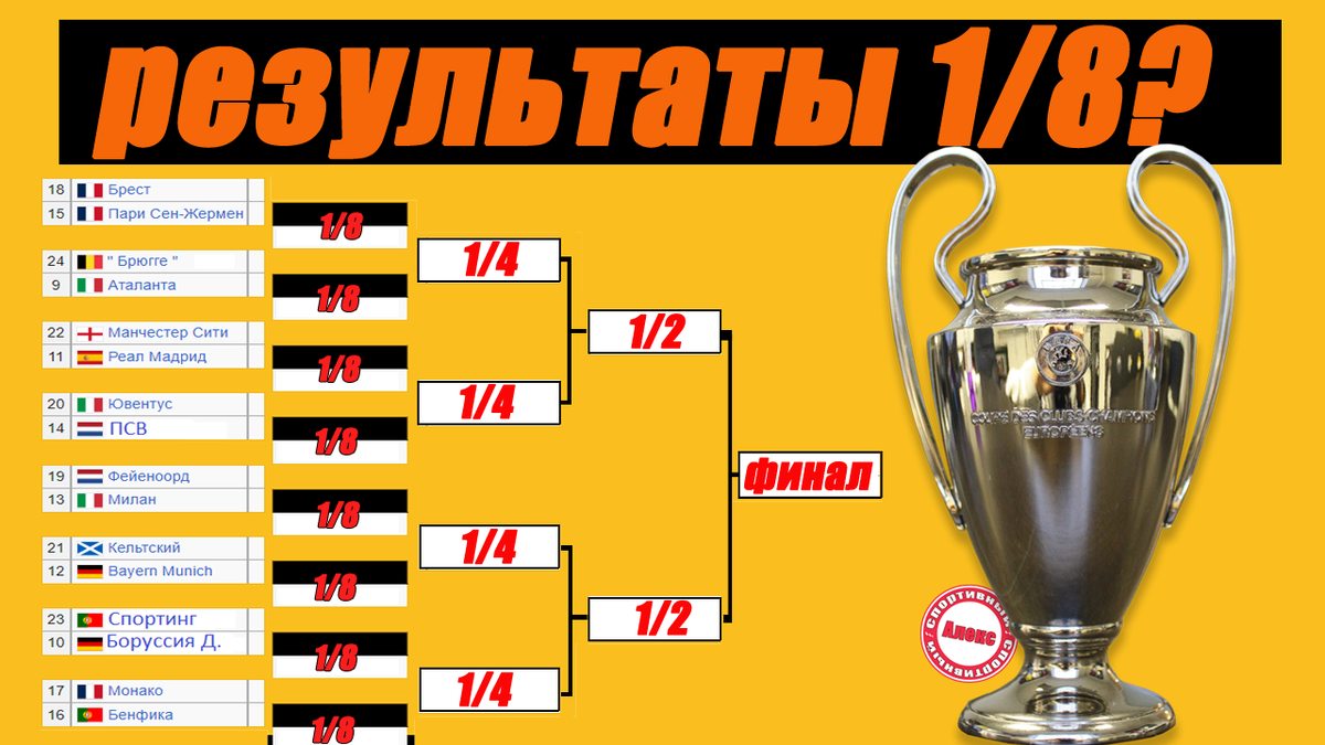 Доброй ночи. В Лиге Чемпионов завершились первые игры 1/8 финала. Расскажу о всех результатах и увлекательной статистике. Фейеноорд уступил в первой игре Интеру – 0:2. До крупного счет мог довести Зелиньски, но не забил на 65-й пенальти. Мои дорогие подписчики сегодня узнают, что Фейеноорд впервые в истории уступил Интеру. Хотя клубы встречались всего 3 раза в истории. Бенфика проиграла дома Барселоне – 0:1. Каталонцы с 22-й минуты дали фору сопернику и играли вдесятером. Но несмотря на меньшинство сумели победить за счёт мяча Рафиньи. Бенфика всю игру весела на воротах Щесны, но несправедливо уступила. Напомню, в 7-м туре основного этапа Барса победила в мега-зрелищной игре 5:4. ПСЖ не сумел дожать Ливерпуль – 0:1. Такого беспомощного Ливерпуля мы давно не видели – всего 2 удара по воротам за всю игру и 29% владения мячом. Однако, именно красный клуб отпраздновал эту несправедливую победу. Просто невероятно, как ПСЖ не забил. Вспомним недавнюю историю: клубы встречались дважды на груп