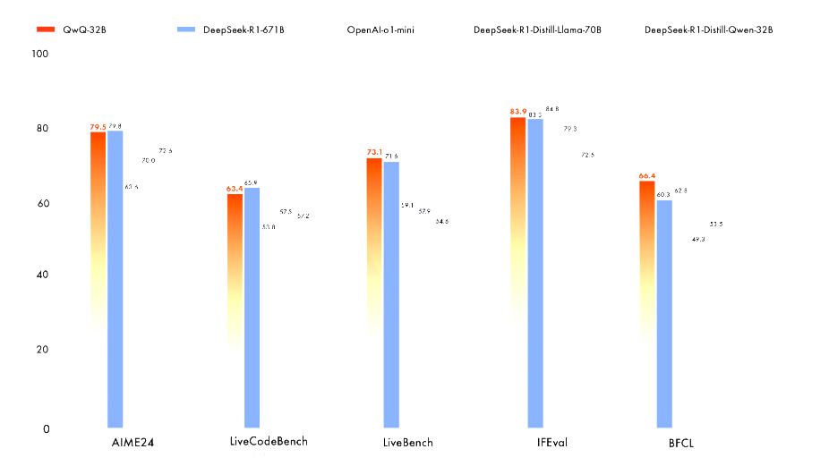 По данным блога, QwQ-32B была оценена на нескольких бенчмарках:
