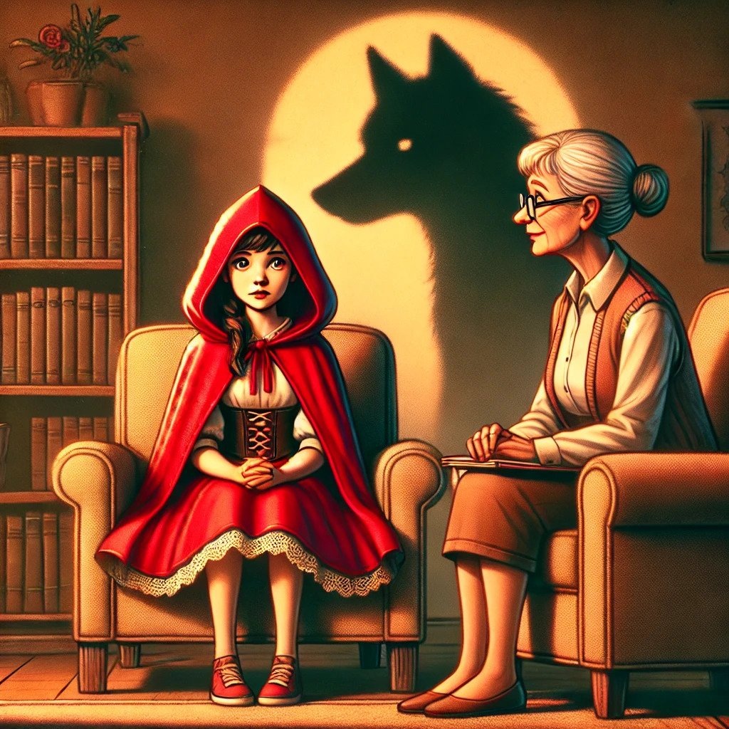 Исповедь Красной Шапочки: психотерапия после волка Я пришла к терапевту, потому что больше не могла спать. Каждую ночь в моих снах снова появлялся этот тёмный лес, снова скрипели ветки, снова этот голос: — Куда-то спешишь, девочка? Я не знаю, почему не рассказала об этом раньше. Все ведь уверены, что у меня всё хорошо. История закончилась хорошо — дровосек спас, бабушка жива. Все говорят: «Ты молодец, справилась». А мне страшно. — Что именно ты чувствуешь? — спросила моя терапевт мягким и добрым голосом. Я долго молчала. Потому что чувствовала… много. Злость, стыд, страх. — Знаете, все говорят, что я была просто маленькой девочкой, которую обманул волк. Но мне кажется, что это моя вина. Терапевт слегка наклонила голову. — Почему ты так думаешь? — Потому что я должна была догадаться. Волк не выглядел добрым. У него были странные вопросы, слишком мягкий голос. Но я не убежала, не позвала на помощь. Я сама сказала ему, где живёт бабушка. Я сама вошла в дом. Я судорожно выдохнула. Слова вы