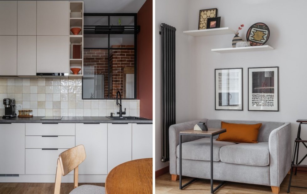 Полностью перекроили типовую квартиру и превратили ее в стильное комфортное жилье в духе американских ситкомов Место: Москва Тип дома: Новостройка Метраж: 35 кв. м Cанузлы: 1 Высота потолков: 2,5 м Бюджет: 1,8 млн рублей Дизайн: ПАвел Баканов Стилист: Екатерина Наумова Фото: Михаил Чекалов Заказчица, молодая девушка Дарья, обратилась к дизайнеру Павлу Баканову с идеей преобразовать небольшие 35 кв. м в уютный, современный и функциональный интерьер. Главным пожеланием было выделить общую зону кухни-гостиной, отдельную спальню и организовать гардеробную, которая позволила бы эффективно использовать пространство и сохранить порядок. На начало проекта квартира представляла собой «бетонную коробку» с открытой планировкой и выделенными мокрыми зонами. В процессе преобразования пространства было возведено несколько дополнительных стен, что позволило создать уютную кухню-гостиную, спальню с гардеробной, а также прихожую и хозяйственный блок с постирочной. Спальню от кухонной зоны отделили с по