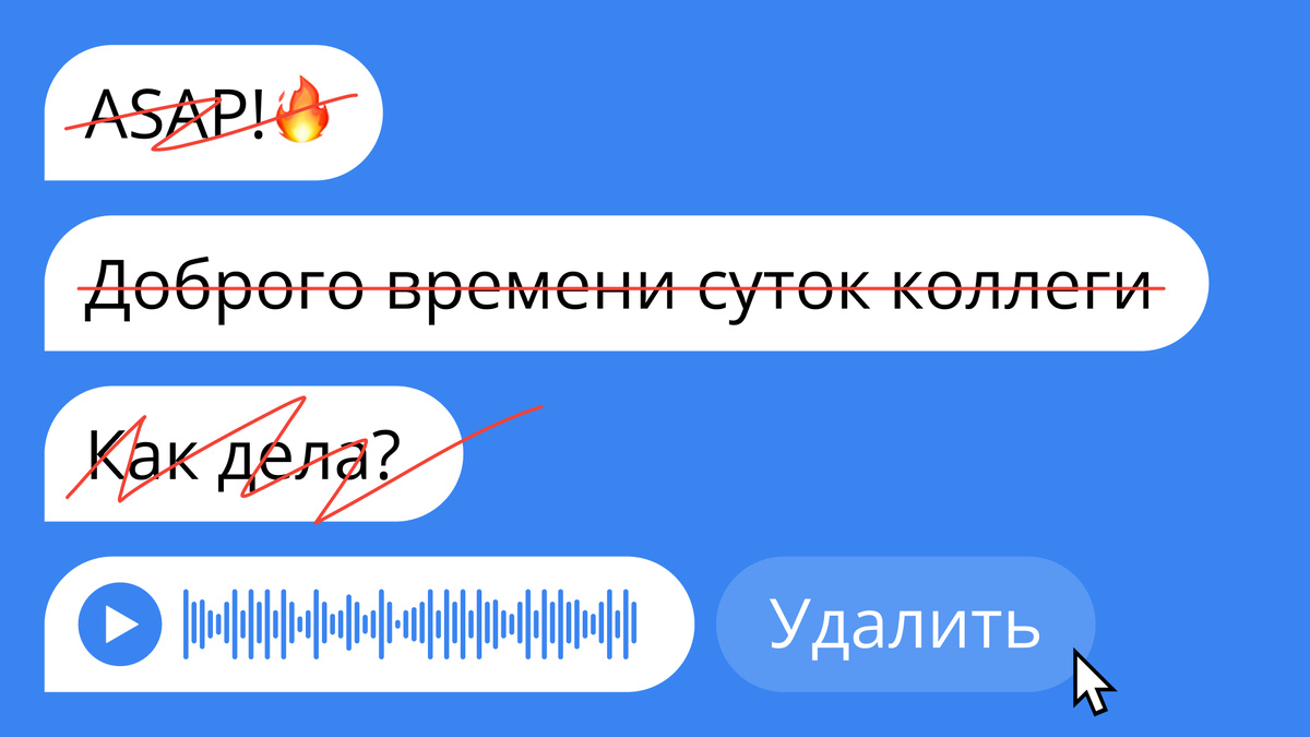 Но при этом аудиосообщения — прекрасный способ быстро делиться информацией. Например, можно попросить коллегу накидать план работы или объяснить, как выполнить задачу правильно. Если в мессенджер встроена технология для транскрибации, то голосовое можно сразу превращать в текст.