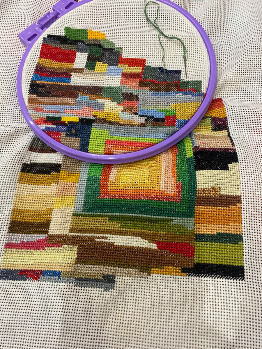 Последнею неделю официальной зимы занималась разбором «творческого беспорядка». А именно повышивала остатками ниток от наборов свою накидку на стул, довышивала начатыши старшей дочери. Первый начатыш был сделан ею в далеком 2017 г. И это была «Рыбка» от Алисы с нанесенным на канве рисунком. Долга ее мучила моя Анютка своими ручонками. Очень ей хотелось тогда в свои восемь лет сидеть с мамой рядышком и колупать крестики. Но детский темперамент давал о себе знать и «Рыбка» вышивалась, то криво-косо, то нитки путались, то просто не было терпения у девчонки и надо было бежать познавать мир. Так «Рыбка» и осталась на половину не вышита. Перекочевала она соответственно в мои долгострои и перекладывалась мной из года в год. В этом году наконец то я ее вышила, отстирала, отгладила и вот теперь думаю, куда ее применить. Второй долгостройный процесс мне достался от Анюты уже в 2022 году. Этот набор с напечатанным рисунком на канве, мы с ней купили в Фикспрайсе специально для уроков труда. Неско