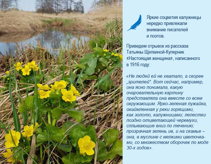 Календарная весна уже наступила, а за окном все еще снежно и морозно. Однако уже совсем скоро природа начнет пробуждаться и поражать своими сочными красками. На свете не так много женщин, которые не любят цветы. Есть те, кто просит не дарить букеты или цветочные композиции, потому что через пару дней, максимум неделю они увядают. Но разве можно совсем не любить эту прелесть, подаренную природой?! Пройдет совсем немного времени, когда пригорки, лощины, равнинные степные просторы украсят первоцветы. В преддверии Международного женского дня предлагаем совершить тематическое путешествие по районам, где расположены производственные объекты нашего предприятия. Главное условие тура – не срезать и не срывать растения. Во-первых, живые цветы радуют взгляд. Во-вторых, большинство сегодняшних «героев» занесены в Красную книгу Оренбургской области. Любительница воды Когда сходит первый снег и вешние воды бурными потоками уносятся вдаль, в низинах зацветает калужница болотная. В народе ее еще назы