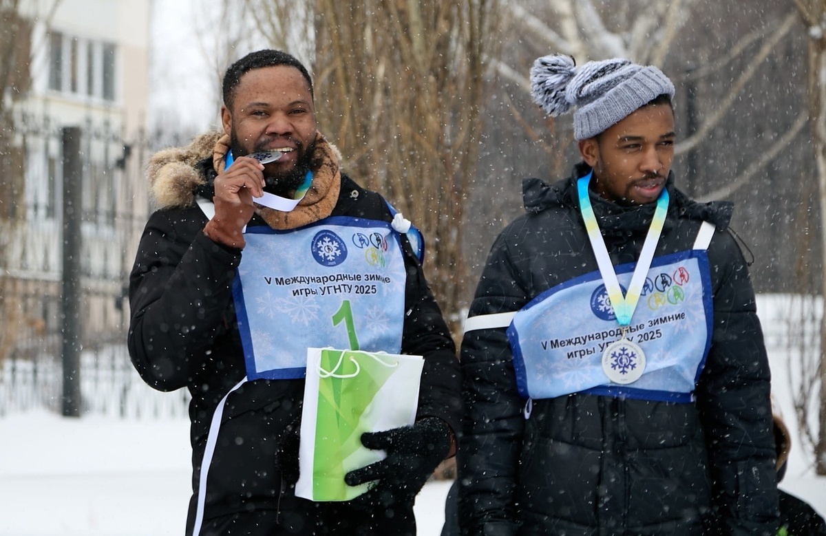 В Уфимском государственном нефтяном техническом университете пятый год подряд проходят веселые зимние игры. По традиции в них принимают участие иностранные студенты – поэтому эти игры называются международными. Каждый год организаторы придумывают что-то новое, но основа остается неизменной – бег на лыжах с сочетанием броска мяча в баскетбольное кольцо. Торжественное открытие соревнований 5 марта, на стадионе УГНТУ (ул. Космонавтов, 6/1). На фото ректор вуза Олег Баулин и олимпийская чемпионка по фехтованию Аделина Загидуллина. По традиции открыл соревнования ректор университета Олег Баулин. Он сказал, что когда пять лет назад придумали эти веселые соревнования, было не совсем ясно – приживутся ли они. Началось всё в декабре 2020 года, когда иностранные студенты УГНТУ, приехавшие из стран Африки, Латинской Америки и Азии, впервые увидели снег и встали на беговые лыжи. Ребята увлеклись этим видом спорта и рискнули «бросить вызов» команде ректората. Ректор Олег Баулин вызов принял и начал