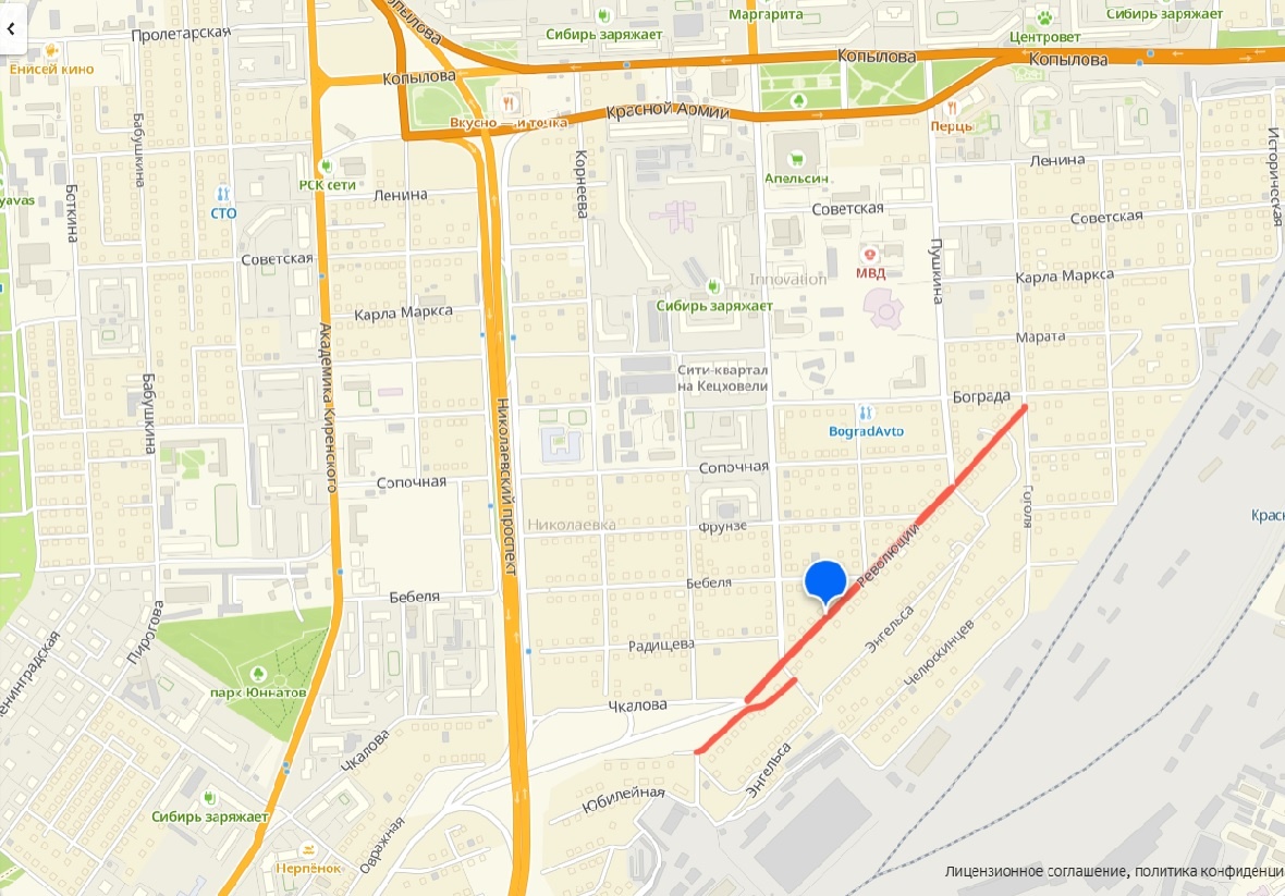 В Красноярске резервируют земли под реконструкцию автомобильных дорог в Николаевке. Распоряжения опубликованы на сайте мэрии. Для реконструкции улицы Революции от Чкалова до Пушкина на три года резервируют земельные участки общей площадью 23 621 кв.м., расположенные в Октябрьском и Железнодорожном районах. Такие же меры вводят по улице Ладо Кецховели — на участке от Сопочной до Революции. Резервирование земель означает, что на участке ограничат строительство зданий — в том числе жилых, производственных, культурно-бытовых и иных домов. Ранее мэрия резервировала участки по ул. Сопочной на участке от Николаевского проспекта до ул. Пушкина. фото: 2ГИС