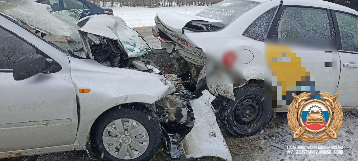 ДТП произошло утром 5 марта на подъезде к Стерлитамаку, близ села Старое Барятино. По предварительным данным, 59-летний водитель на автомобиле "Шевроле Нива" двигался в направлении Уфы. Он выехал на полосу встречного движения и допустил столкновение со встречной "Ладой Гранта". После чего "Лада" столкнулась касательно с другой попутной "Ладой Гранта". Два водителя и два пассажира из разных машин получили травмы. Выясняются подробности ДТП. Источник: Госавтоинспекция РБ. Фото: Госавтоинспекция РБ.
