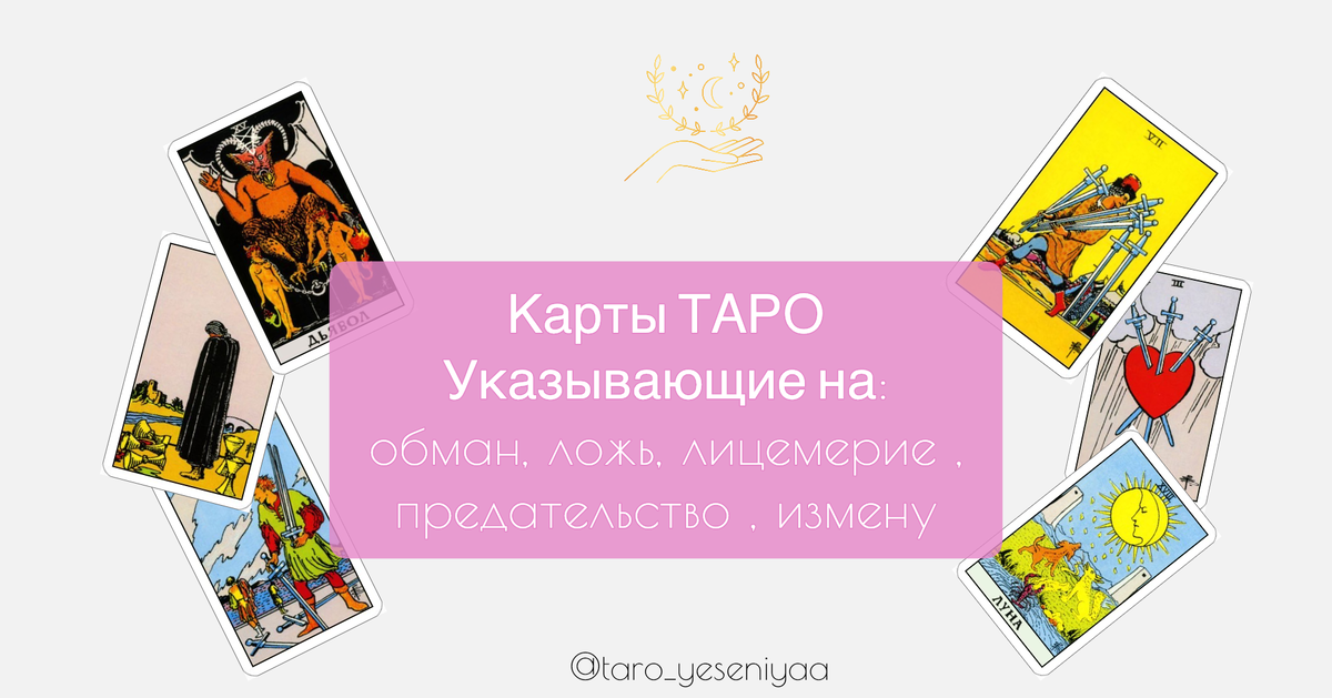 Сегодня хочу поделиться с вами важной темой – картами Таро, которые могут указывать на предательство и измену.🖤💔 Давайте рассмотрим несколько ключевых карт, с которыми стоит быть особенно внимательными: ❤️🩹Тройка Мечей – Символизирует сердечные раны и предательство. Эта карта часто указывает на глубокие эмоциональные страдания и боль, связанная с разрывом отношений. ❤️🩹Семерка Мечей– Указывает на хитрость и обман. Эта карта может сигнализировать о том, что кто-то не совсем честен в своих намерениях и действиях. ❤️🩹Луна – Говорит о неясностях и скрытых мотивах. Она может указывать на иллюзии и запутанные ситуации, где правда скрыта за завесой лжи. ❤️🩹Пятерка Кубков – Связана с утратой и разочарованием. Эта карта отражает чувство печали и сожаления о том, что было потеряно, и напоминает о необходимости двигаться дальше. ❤️🩹Дьявол – Эта карта может указывать на манипуляции, зависимость и токсичные отношения. Она часто символизирует ситуации, из которых трудно выбраться, и