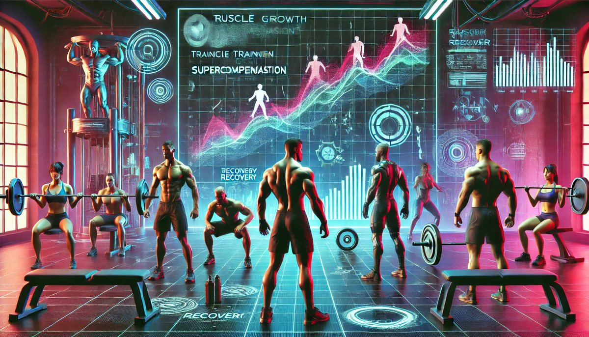 На диаграмме ниже показано, как мышцы восстанавливаются и растут после тренировки. Сначала идёт спад (разрушение), затем фаза восстановления, а потом надстройка (то самое увеличение мышц). ⚡️ У разных людей эта кривая выглядит по-разному. Влияет: