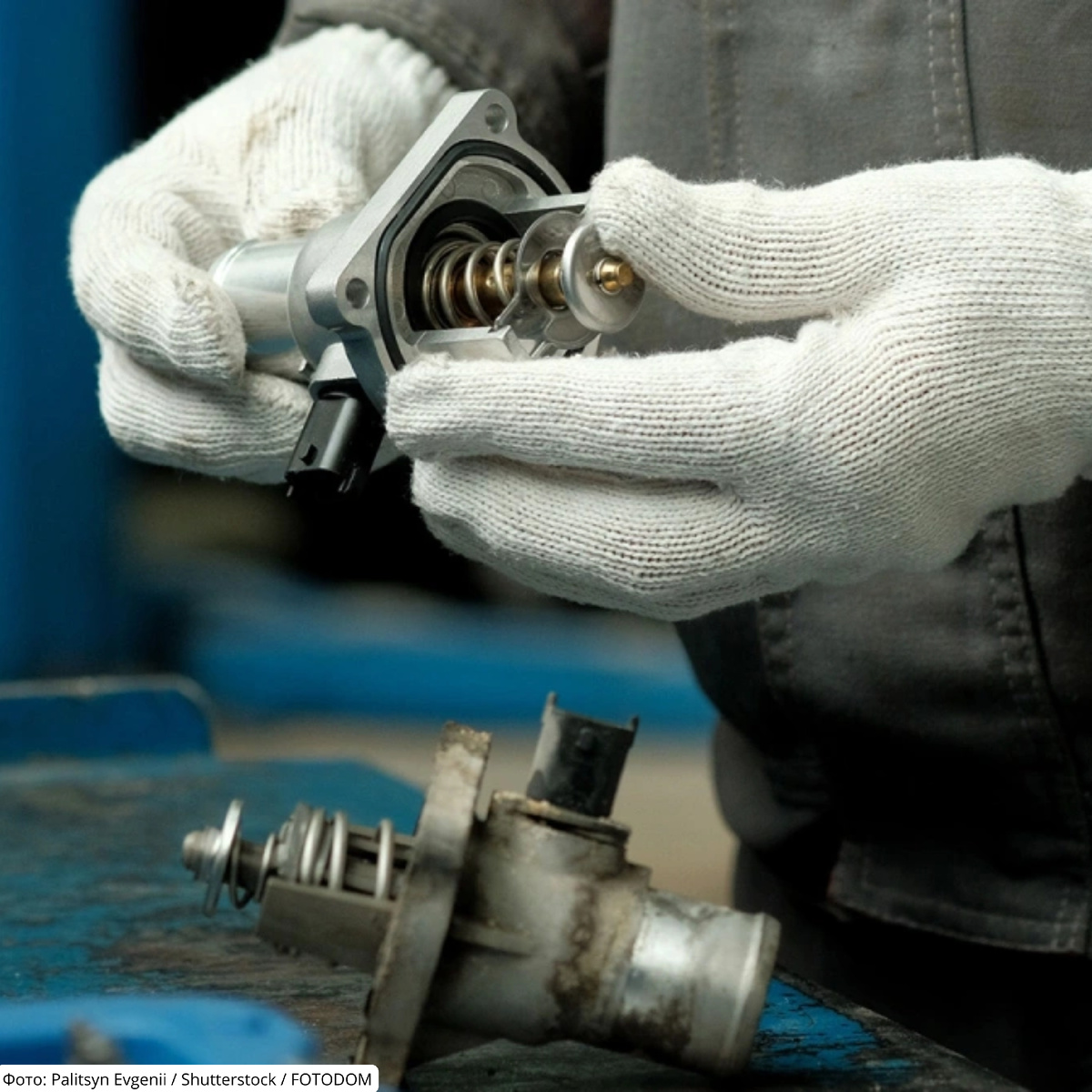 ⚙ Термостат – важный элемент системы охлаждения, который можно проверить самостоятельно. Разбираем, как он работает, какие признаки указывают на неисправность и как провести диагностику в домашних условиях. Что такое термостат и зачем он нужен? Термостат регулирует движение охлаждающей жидкости (ОЖ) в двигателе, перенаправляя её по малому контуру при прогреве и по большому – через радиатор, когда достигается рабочая температура. Это помогает поддерживать оптимальный температурный режим, предотвращая перегрев и излишнее охлаждение мотора. 🌡Где расположен термостат? Чаще всего он находится на блоке цилиндров, в корпусе системы охлаждения. Это небольшая деталь, закреплённая внутри металлического корпуса, соединённого с патрубками для циркуляции жидкости. 🔧 Как работает термостат? На холодном двигателе термостат закрыт, и ОЖ циркулирует по малому кругу без выхода в радиатор. Это ускоряет прогрев. При нагреве специальный наполнитель (чаще всего церезин) расширяется, выдвигая шток с клапа