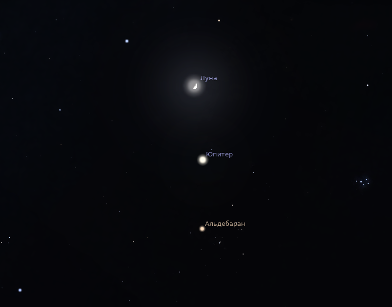 Не пропустите: вечером 6 марта нас ждёт сближение Луны, Юпитера и Альдебарана