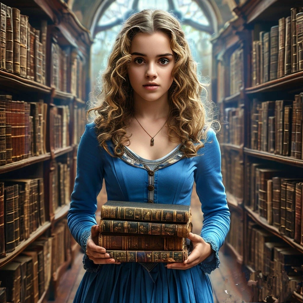 Этот несерьёзный текст — литературная головоломка. Читателям предлагается угадать знакомых героев и элементы сюжета. Глава I. Кольцо Хронолога и Зеркало Бессмыслицы В кабинете архаичной магии пахло пылью веков и чернилами, высохшими ещё при Ньютоне. Миона провела пальцем по корешку фолианта с тиснением — «Тайны временных петель: от Альбусов до Алис». Тут ее взгляд упал на шкатулку, спрятанную за стеклянной витриной. Внутри, на бархате туманного цвета, лежало кольцо: серебряное, с гравировкой в виде зайчика, вечно бегущего по ободку, и крошечной надписью: «Опоздал? Не спеши — теперь ты опоздал навсегда». Как только Миона коснулась кольца, воздух сгустился, как сироп. Стрелки часов побежали вспять. Зеркало напротив исказило отражение: вместо Мионы в нем мелькнула девочка в голубом платье, падающая с ветки зеленого дуба, но вместо земли под ней зияла бездна. — Не стоит, — прошептал чей-то голос, но Миона уже надела кольцо. Мир перевернулся. *** Она очнулась в лесу, где деревья р