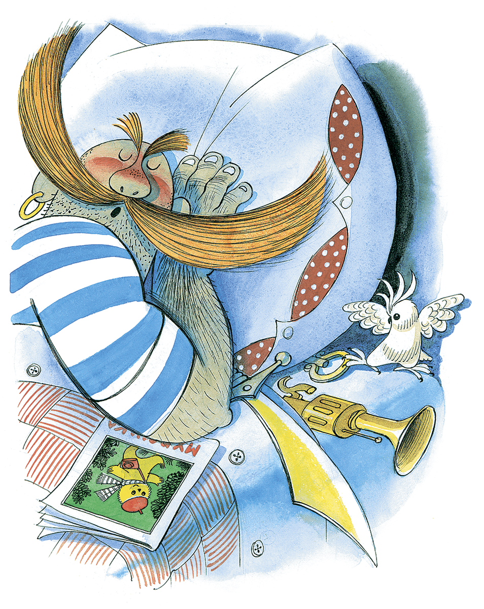 Мир жесток, это правда. Но чем позже ребёнок столкнётся с жестокостью, тем лучше. Не должно быть в книге таких картинок, которые пугают, которые хочется поскорее захлопнуть, а то и вырвать! В этом убеждал Сергей Образцов своего друга Виктора Чижикова. Художник согласился и дал себе зарок изображать даже самых "гадских" персонажей ... смешными. Смешные - уже точно не страшные! Вы только взгляните на этого Бармалея, который перед сном читал "Мурзилку"!