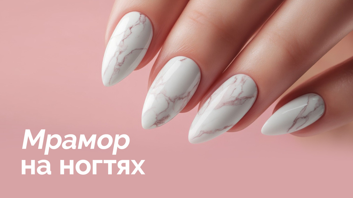 Мраморный маникюр — один из самых популярных видов нейл-арта. Текстура такого маникюра напоминает красивую поверхность природного мрамора, а выполнение дизайна совсем не сложное. В этой статье мы собрали самые красивые идеи для мраморного маникюра, а также пошаговую инструкцию по его созданию. Смотри, выбирай и вдохновляйся! Шаг 1. Подготовь ногти: удали остатки старого лака и сделай маникюр. Шаг 2. Нанеси базовый слой и высуши его в лампе. Шаг 3. Нанеси два слоя основного цвета и высуши каждый слой в лампе. Шаг 4. Нанеси несколько капель других цветов гель-лака на палетку. Шаг 5. Возьми тонкую кисть и погрузи ее в капли лака на палетке. Шаг 6. Нанеси кистью на ногти точки и линии, создавая узор мрамора. Шаг 7. Высуши ногти в лампе. Шаг 8. Нанеси топ и высуши его в лампе. Маникюр готов. Мраморный маникюр можно дополнить различным декором, чтобы сделать его еще более оригинальным. Вот несколько популярных идей: Для создания мраморного дизайна можно использовать различные цвета гель-лака