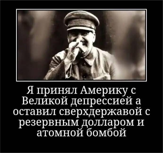 Что полезного может дать культ Сталина современной России? Тем более, что у его поклонников внутри РФ, как не было так и нет адекватной самобытной-Российской политической теории. Не было ее как известно и при самом Сталине. Известно, что коммунисты всю свою идеологию как и прежде заимствуют у коллективного запада. Вот и получается, что КПРФ, согласно завещанию своего гуру - это партия полит-идеологической мертвечины! А вот у президента США Трампа есть и теория план - MAGA. Но какое место в этом плане отводится для России, у которой вообще нет своего самобытного плана и нет своего самобытного Образа Будущего? Кто знает? Кто может рассказать? Опять же именно сам Сталин открыто указал на место "небытия" России, в этом новом коллективно-западном интернационал-социалистском MAGA-МИРЕ: В дни когда Америка была "великой", где в тот момент была Россия? Очевидно, что нигде. России вообще не было в те дни на политической карте мира, в это время был лишь сталинский русофобский СССР. Именно