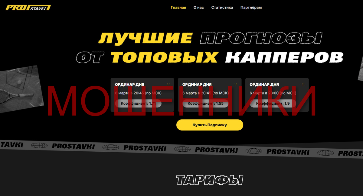 🛑 ProStavki Pro – это не надёжный каппер, а очередной способ выманить деньги у доверчивых беттеров. Если вам дороги ваши финансы, держитесь от этого проекта подальше!