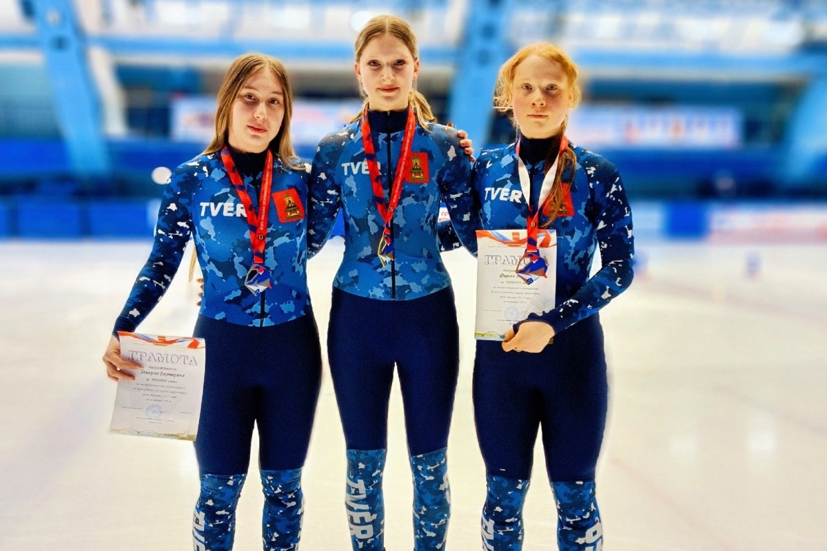 Воспитанники СШОР по ледовым видам спорта привезли домой четыре золота, четыре серебра и четыре бронзы. С 3 по 5 марта в Рыбинске (Ярославская область) прошел третий этап межрегиональных соревнований по шорт-треку среди юношей и девушек 14-15 и 16-17 лет. На ледовой дорожке Дворца спорта «Полет» спортсмены Ярославской, Тверской, Нижегородской, Калининградской областей и Москвы разыграли комплекты наград на дистанциях 1500, 500 и 1000 метров, а также в эстафетах. По итогам трех дней забегов воспитанники тверской СШОР по ледовым видам спорта имени олимпийского чемпиона Ю.М. Михайлова собрали коллекцию из 12 медалей, в том числе четырех золотых, четырех серебряных и четырех бронзовых. Наибольшего успеха добились девушки 16-17 лет. В первый день тверичанки заняли весь пьедестал почета на дистанции 1500 метров. Надежда Рогова завоевала золото, Екатерина Заикина – серебро, Варвара Фирова – бронзу (на заглавном снимке). Вместе с Вероникой Ворониной они также одержали победу в эстафете на 3000