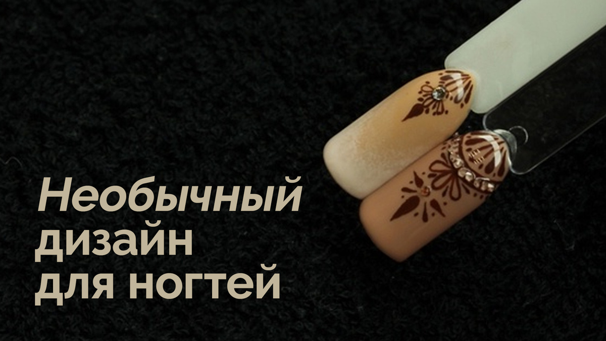 Мехенди – это роспись по телу хной, предполагающая определенный стиль рисунка. Сегодня этот вид рисования популярен не только среди тех, кто любит украшать свое тело, но и среди мастеров маникюра. Мы представляем дизайн ногтей в стиле мехенди, который можно создать с помощью акриловой краски и дополнить декоративными хрусталиками. В своем примере мы использовали классические для мехенди оттенки: бежевый (телесный) и коричневый (цвет хны). После обработки ногтевой пластины и нанесения базового слоя нужно покрыть ногти основным цветом и слоем топа. Такой маникюр с мехенди узорами смотрится очень стильно и утонченно. Далее мы использовали коричневую акриловую краску на водной основе. Смешав ее с небольшим количеством воды до сметанообразной консистенции, мы приступили к разрисовке. Для создания узоров мехенди на ногтях мы использовали кисть для дизайна Roubloff №0. Чтобы акриловая краска не засыхала на кисти, периодически рекомендуем промывать наконечник водой. Готовый узор после высыхани