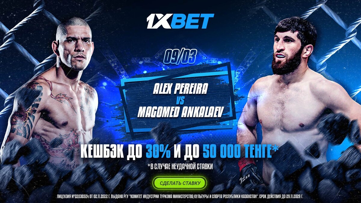 Алекс Перейра – Магомед Анкалаев Любите смешанные единоборства? Ударная акция для всех поклонников боев MMA! Каждая ваша ставка на поединки в UFC будет защищена! Компания 1XBET предлагает поддержать своего фаворита и получить до 50 000 тенге и кэшбэк до 30% в случае проигрыша. Чтобы участвовать в акции «1x Punch» необходимо зарегистрироваться на сайте компании и сделать одиночную ставку на маркет «П1 Х П2» по линии/ Live на сумму от 5000 KZT на бой, представленный на сайте 1XBET или в приложении. Учитывается только первая ставка на бой. Если ставка одиночная и она проиграет – вы получите бонус, соответствующий проценту ( согласно градации) от первоначальной ставки. Если ваша первая ставка на этот бой выиграет, бонус в таком случае не зачислиться. Максимальная сумма возврата 50 000 тенге. Делайте ставки на бой и болейте за своих фаворитов вместе с главным спонсором спортивных эмоций 1XBET!