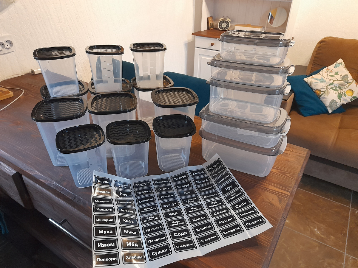 Пока строительные работы ведутся вяло, я решила прикупить кое-что для обустройства нашей дачной жизни. Давно хотела навести красоту в кухонном шкафу, который стоит в беседке. Купила набор контейнеров для хранения готовой еды и набор для сыпучих продуктов. Два сезона подряд пользуемся черными губками для мытья посуды. Нравится их эстетичный вид и качество. Заказала 2 набора по 10 штук. Один в квартиру, второй на дачу. Пора менять разделочные доски. Приобрела четыре разного цвета. Они тоже шли набором. Мы любим такие доски. Они хорошо моются, плохо впитывают запах и гнутся, что удобно при нарезании салатов. Еще у нас новые миски. Такого же объема стеклянные миски постепенно перебились, пришлось купить новые. В ФП взяла по две с разным рисунком. Они хорошо будут сочетаться с остальной нашей белой посудой. Ну и под конец покажу дорогие покупки. На дачу мы старье не тащим, вся посуда новая. Были здесь и хорошие сковородки, и четырехлитровый казан. За осень-зиму все утащили в квартиру. Квар