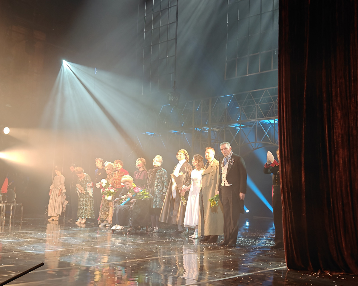 Сначала краткая экскурсия по спектаклю для тех, кто не смотрел. Тут есть все театральные украшалки. Посмотрите налево: вот вам песни, стихи и живой оркестр! Посмотрите направо: вот вам красивые молодые актеры (тут завсегдатаи театра сразу подумали про Александра Емельянова и Павла Усачёва, но и остальные хороши, что уж там). Посмотрите в любую сторону, и вы увидите и услышите народную любимицу Валентину Илларионовну Талызину и не испещренную пугающими режиссерскими изысками пушкинскую историю про Германна и карты. Изыски имеются, однако вполне мирные: повесть поставлена, так сказать, с мистическим уклоном, но все прилично.