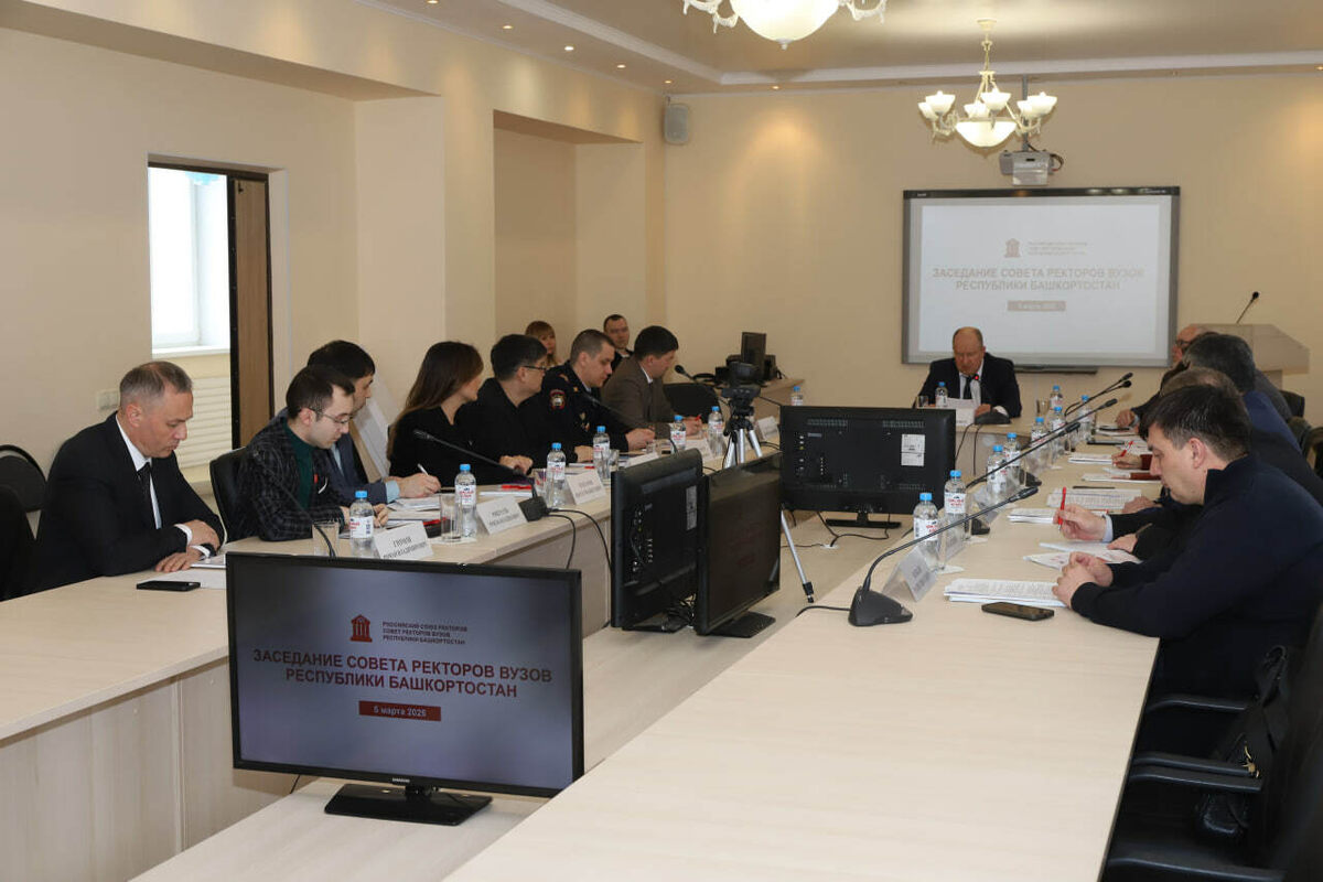 На площадке Института развития образования РБ состоялся очередной Совет ректоров вузов Башкортостана под руководством председателя Совета ректоров вузов РБ, ректора БГМУ Минздрава России, академика РАН, профессора Валентина Николаевича Павлова. На повестке – развитие студенчества, вопросы патриотического воспитания, совершенствование образовательного процесса и расширение международного сотрудничества. Участники обсудили подготовку к межвузовской Спартакиаде на кубок имени Р.Г. Мазитова, развитие студенческих инициатив и масштабирование работы регионального студенческого медиа-центра, развитие Движения Первых в вузах Башкортостана. Заместитель министра семьи, труда и социальной защиты населения РБ Тимур Каримов рассказал о развитии волонтерских проектов, которые реализуются в молодежной среде. Так, например, республиканская благотворительная акция «Помоги собраться в школу» по итогам 2024 года охватила своей помощью более 10 000 детей, а новый проект по оказанию продуктовой помощи «Дел