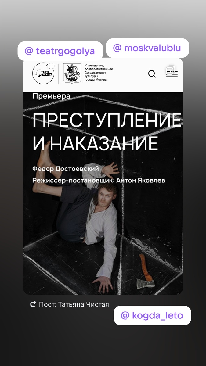 Театр Гоголя"Преступление и наказание" ПРЕМЬЕРА