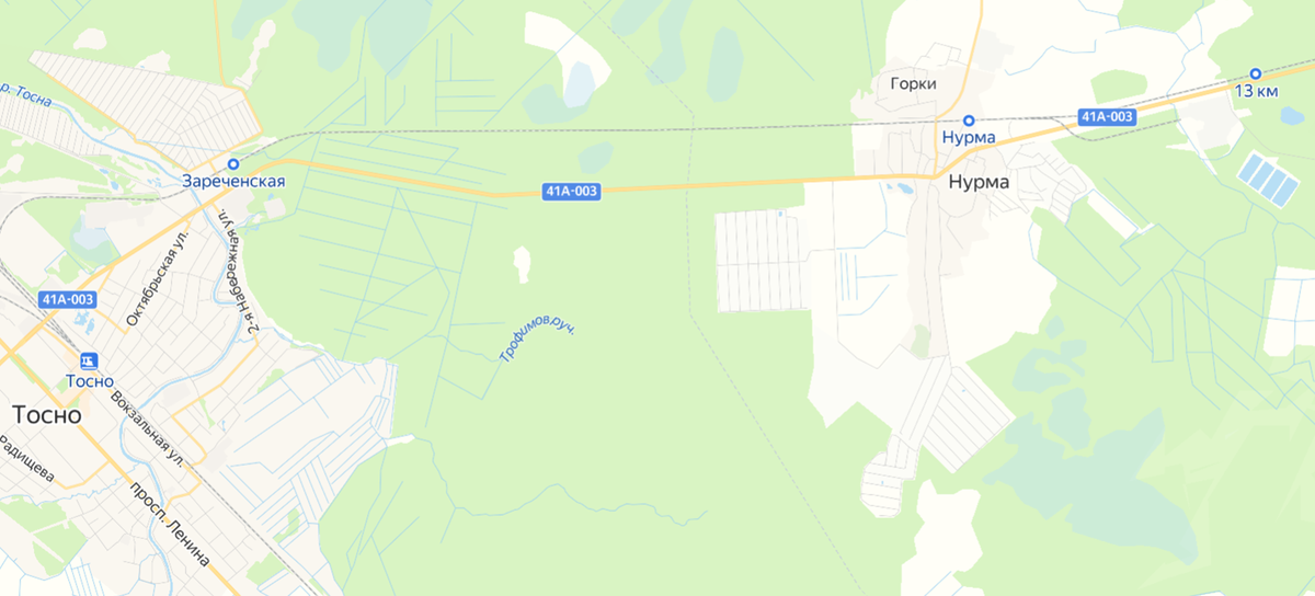 Вот и добрались мы до числа 13. Чёртова дюжина. Многие авиакомпании сегодня из суеверия убирают тринадцатый ряд в салонах своих самолетов. Многие из принципа не берут билет на поезд на место № 13. Но в части наименований наши железные дороги оказались не столь суеверны. Несколько о.п. 13 км у нас присутствует. Начнем с Санкт-Петербурга и его окрестностей. В частности такой о.п. есть на линии Тосно-Шапки к востоку от Тосно. Примерно середина этого участка Свои 6 пригородных поездов через этот пункт следуют. Ничего примечательно я там в округе не нашел. Второй же о.п. 13 км в Ленинградской области находится на участке Выборг-Хийтола. Там мы уже были недалеко в предыдущей статье цикла про 12-й км. К северо-западу от о.п. есть памятник бойцам 51-й стрелковой дивизии. Следующий о.п. 13-й км расположен в черте Калининграда на линии Калининград - Балтийск. Совсем рядом с ним поселок / микрорайон Александра Космодемьянского. Раньше это место называлось Медгетен. После войны его переименовали.