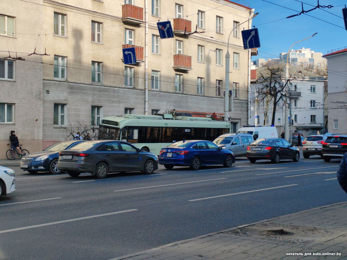 Троллейбус с пассажирами снес дерево в Минске. Это попало на видео