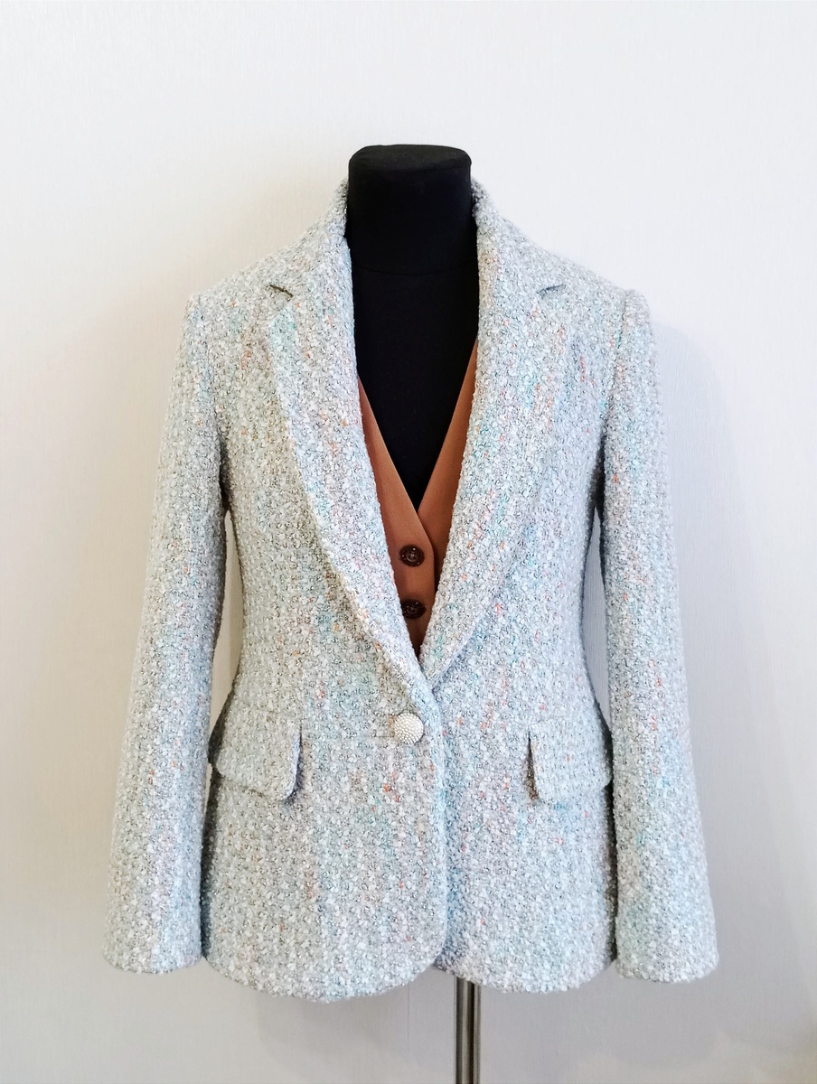 Жакет (по плотности больше похож на пальто) из очень плотного необычного твида. В меру приталенный. Нижний воротник и обтачку горловины сделала из шерсти, чтобы было комфортно и убрать плотность в этих деталях. Пуговица одна, но особенная) Выкройка Burda 3/2015 модель 112 B, расход около 1,5 м (длину корректировала), выкройка для меня оказалась очень удачная, получилось именно такое, как и планировала. Теперь для меня это любимая выкройка приталенного жакета. Подкладка - вискоза, цвет "хамелеон".