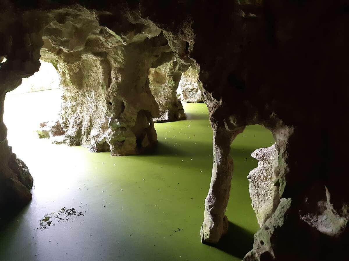 Поразили воображение гроты с причудливыми колоннами и с водой, затянутой яркой зелёной тиной.