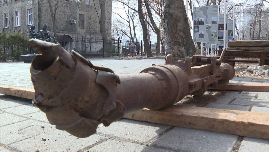 Доставали из леса его два года, готовясь к транспортировке как к военной операции. Новый экспонат пополнил фонд музея Арсеньева. На выставке к 80-летию Победы представят авиационную пушку, разбившегося в годы войны истребителя. Пока еще на улице, в музейном дворике в сторонке скромно лежит новый экспонат. Один из будущих брильянтов коллекции. Пушка истребителя Як-9Т. Спасена с места крушения самолета от черных металлистов. Максим Якупов, главный хранитель фондов Музея истории Дальнего Востока имени В.К. Арсеньева: «Орудие несет на себе следы авиакатастрофы. Можете заметить следы повреждений — вмятины, разорванных металл». - А есть какой-то номер? - Да, мы вот тут подчистили. Можно прочитать, что 37-миллиметровая пушка НС-37 Нудельмана-Суранова». Разбился самолет во время тренировочного полета в августе 1950 года, Герман Папенков, молодой летчик погиб. Место крушения обнаружил отряд «Авиапоиска» пятнадцать лет назад и установили памятную табличку. Экспонатом станет лишь часть авиационно