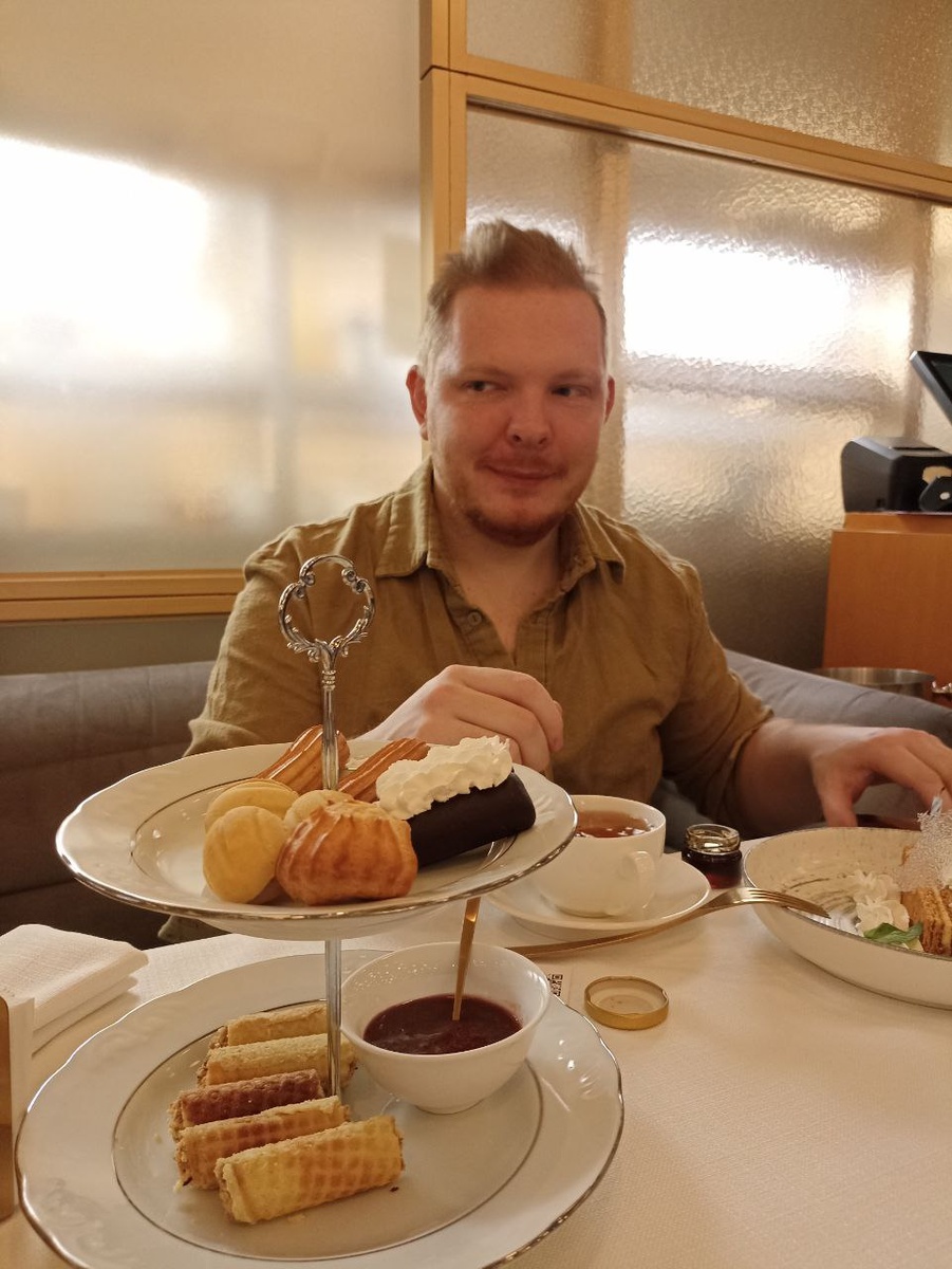 "Репа широкая - значит все не так уж плохо у нас..." А я тут супруге устроил небольшой праздник. Говорю: выбери любой ресторан в честь праздников (подряд Дни рождения\день СВ\день ЗО\ МЖД). И она побежала выбирать самый дорогой, пафосный (а еще самый высокий в России и Европе), это было слишком предсказуемо. Ruski находится на 85 этаже или на высоте 360 метров в одной из самых высоких башен комплекса небоскребов "Москва-сити". Мы одели все чистое, и забронировали столик на 17:00, чтобы застать дневной вид, закат и ночной вид на столицу. И, слава Богу, что повезло с погодой, Москва не часто балует солнышком, а в пасмурный день мы бы ничего кроме облаков не увидели бы. Внутреннее убранство ресторана оказалось очень роскошным, оформленным в золотых тонах и натуральных материалах, часто обыгрывались мотивы русского фольклора. Публика вперемешку, много и семейных, много и золотой молодежи. Кухню можно только похвалить, вкусно (но очень дорого), старославянские рецепты, некоторым из которых