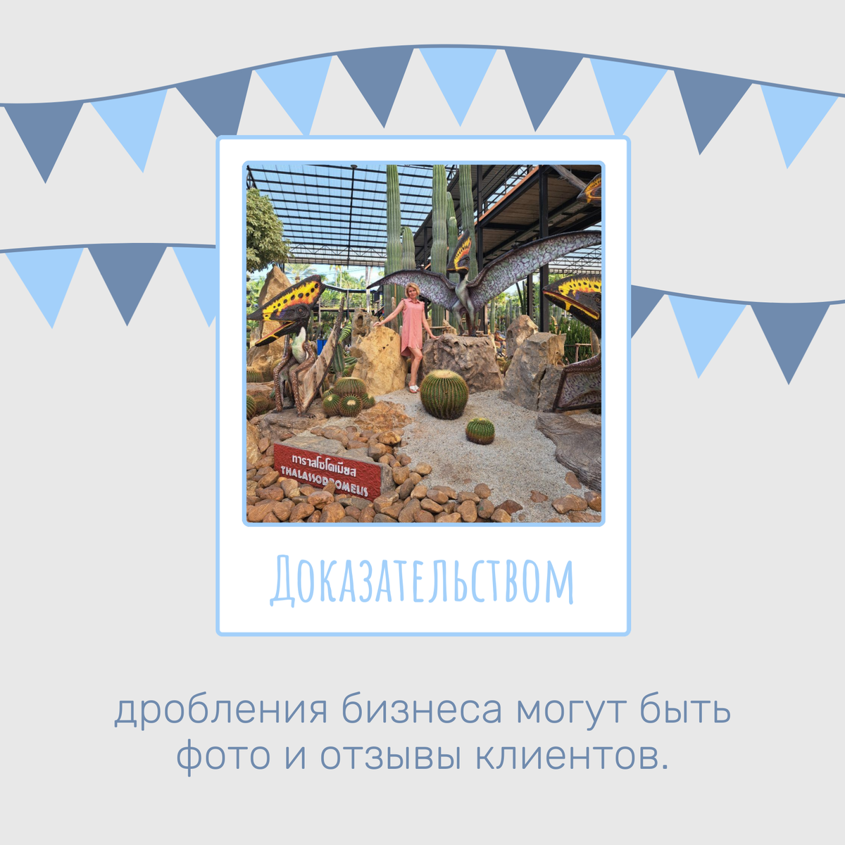 Доказательствами дробления бизнеса могут быть фото и отзывы клиентов
