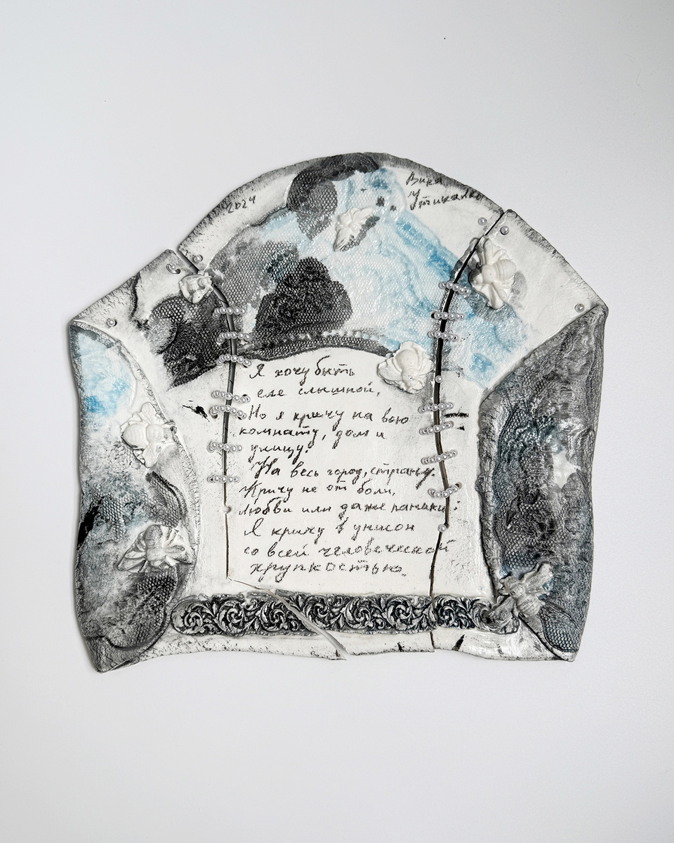 Настенные керамические объекты Вики Утикалко имитируют листы писем в декоративных рамках. В наше время, когда бóльшая часть писем остаются электронными, работы становятся метафорой стремления человека сохранить памятные моменты на длительный срок. Эти «письма», во многом оммаж на эпоху рококо, с её любовью к милым вещицам, и шире - на время до цифровых технологий. Письма Вики Утикалко в материале, а не в телефоне - немного сентиментальная «зарисовка» о тоске по памятным мелочам, которые можно было потрогать и сохранить. Объекты Вики Утикалко можно увидеть в нашей галерее. Мы подбираем искусство под интерьер, работаем с дизайнерами и декораторами. По вопросам приобретения и за другими консультациями обращайтесь в личные сообщения.
