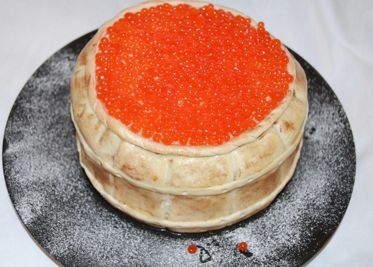 Не так давно я выкладывала видео про то, как можно сделать красную икру. Видео можно посмотреть ЗДЕСЬ А сейчас я хочу рассказать, как можно икру использовать для необычного десерта. Сделать его просто, самый долгий процесс - это создание икры, остальное все как обычный торт. Очень короткое описание изготовление этого торта есть в публикации журнала. Мой рецепт этого тортика попал в журнал и для этого пришлось урезать рецепт до минимума. Ну вдруг вам и этого хватит) А для тех, кто хочет узнать подробно, я напишу ниже рецепт. И так сначала коржи. 3 яйца и стакан сахара перемешать миксером, потом мягкое сливочное масло 100 гр. В стакан муки добавить 1 ч.л. разрыхлителя и высыпать в смесь. Должно получиться такое вот тесто Форма для выпечки должна быть маленькая, чтобы сформировать бочонок. Я использовала маленькие кастрюльки из нержавейки. Диаметр должен быть около 20 см. Пока коржи остывают делаю крем. 200 гр. сливочного мягкого масла, 2 ст. л. коньяка или рома, 4 ст.л. сахарной пудры