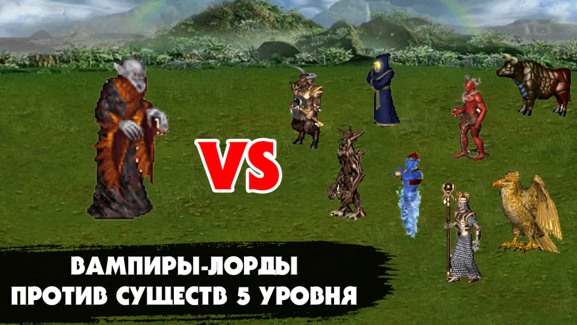 Всем ностальгический привет! Как вы наверняка знаете, вампиры-лорды являются сильнейшими существами 4 уровня в игре "Герои меча и магии 3". А всё благодаря их способности к краже жизни, за счет чего они постоянно восполняют свое здоровье. Но сегодня мне хотелось бы посмотреть, смогут ли сильнейшие существа 4 уровня одолеть хоть каких-нибудь существ пятого уровня? Предлагаю посмотреть это на практике с помощью очередного турнира. Как обычно, начнем с условий. Для того, чтобы турнир был более менее честным и объективным, я решил выставить ряд условий: Сами же бои будут проходить в два этапа. Первый этап - это классический бой 1 на 1. То есть, вампир-лорд в количестве одного юнита будет сражаться против существа пятого уровня каждой фракции по отдельности. Во втором этапе бои будут происходить по точно такой же схеме, но уже 4 на 4. Посмотрим, как изменятся результаты от повышения количества юнитов с обеих сторон. И да, сразу оговорюст, что данный турнир не претендует на объективность. Мы