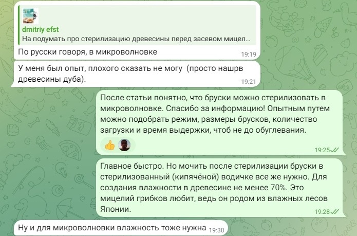 На подумать про стерилизацию древесины перед засевом мицелия
