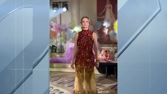 Оно состоит из одной тысячи 260 прозрачных пластин с доисторическими включениями флоры и фауны, а весит два килограмма. Возраст камней достигает 50 миллионов лет! На создание шедевра ушло три месяца: мастера пришивали каждую пластину к фатину тончайшей леской. А для достижения плавного цветового перехода янтарь запекали в печках, получив шесть разных оттенков.