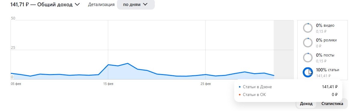 Многие мне скажут: "Ну ты, мать" проснулась!" и тут я не могу поспорить, так как на самом деле меня только на данный счет посетило прозрение. Оказалось, что Дзен на самом деле должен что-то там ретранслировать в Одноклассники, показывая записи в общей ленте. Делает он это или нет, я так и не поняла, так как профиль у меня в данной социальной сети есть, он активен, у меня там есть друзья, а вот есть ли там та самая ретрансляция? Что-то я не вижу... Статистика у меня такова Как вы можете видеть, на скрине нет сведений о том, чтоб какой-либо доход поступал от просмотров записей из Одноклассников, хотя вот именно сегодня ад один единственный просмотр у меня из этой социальной сети был Насколько я поняла, ретрансляция в ОК является проектом пилотным, но все равно уже смело можно сказать, что он бесполезный. А вы заметили у себя просмотры и доход из Одноклассников?