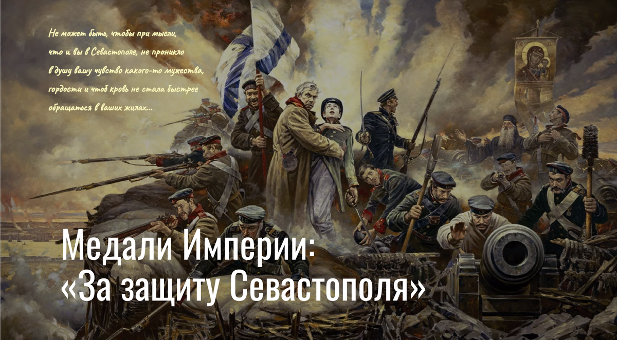 Крымская война, развернувшаяся в середине ХIX века оставила глубокий и трагичный след в истории нашей страны. Тогда Россия, практически в одиночку, противостояла коалиции европейских государств и Османской империи. Есть версия, что причинами, побудившими Николая Первого начать военные действия были его стремления облегчить участь православных подданных, стонущих под гнетом Османской империи, а также укрепить свое влияние в Черноморском регионе. Конечно, политическая карта Европы в 19 веке сильно отличалась от нынешней, но и тогда нашей Родине противостояли государства не желавшие укрепления экономического и военного потенциала России. Одним из ключевых событий той войны стала битва за Севастополь (1854-1855), закончившаяся сдачей города. Однако геройская оборона Севастополя русскими войсками стала иллюстрацией мужества, отваги и стойкости русских войск. О тех событиях сложены песни и сняты фильмы. Не обошли те события и фалеристику. Александр Второй своим указом от 1855 года учредил ме