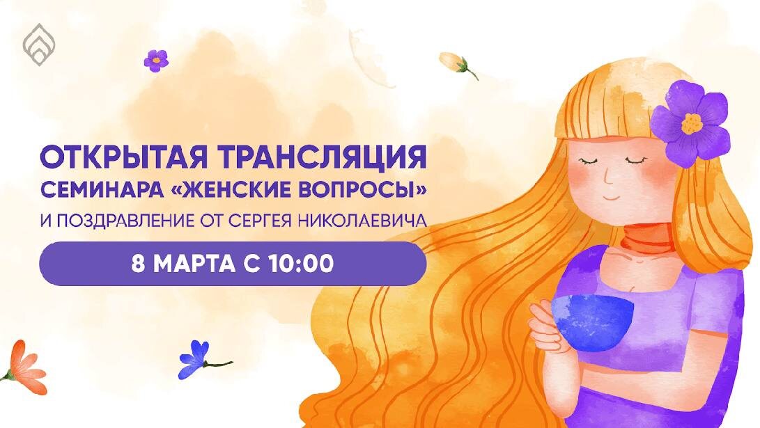 Помимо лекции, вас также ждет душевное поздравление от Сергея Николаевича. В эфире прозвучат ответы на вопросы: 🌼 К каким женщинам тянутся мужчины и как всегда оставаться привлекательной для мужа? 🌼 Что делать, если мужчина не может определиться – хочет он быть со мной или нет? 🌼 Как внутренне подготовиться к замужеству и семейной жизни? 🌼 Как решать конфликты с мужем, который уверен в своей правоте? 🌼 Есть ли способ защититься от “прилипчивости” близкого человека? 🌼 Всем ли женщинам полезна йога? 🌼 Можно ли достигать успехов в спорте и на работе, оставаясь при этом женственной? Посмотреть трансляцию лекции можно будет на YouTube только онлайн. Для тех, кто по техническим причинам не сможет к ней присоединиться, будет организована трансляци