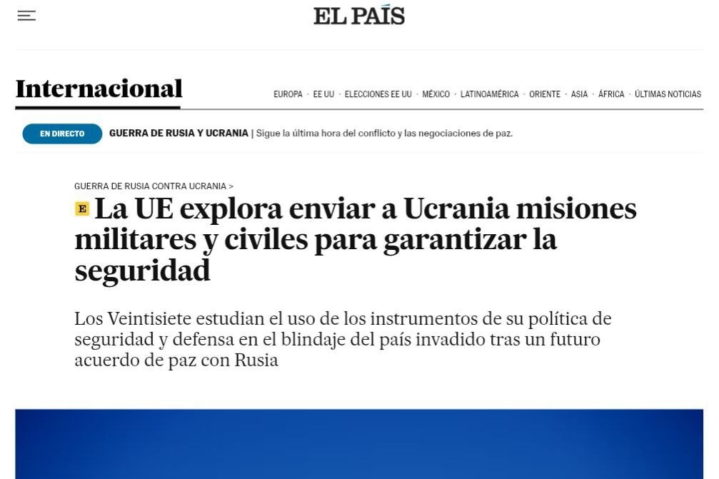 El País: ЕС, несмотря на желание отправить миротворческие войска на Украину, зависят от США