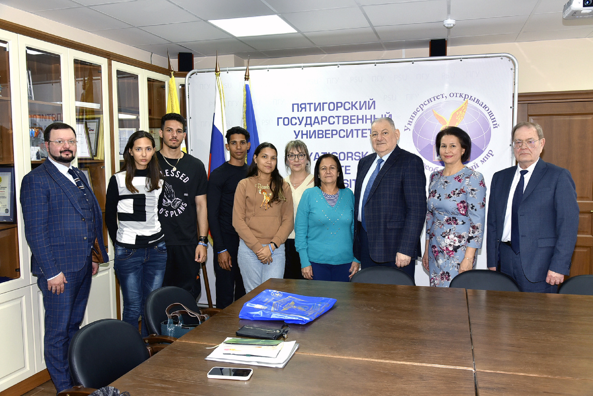 18 февраля в Пятигорский государственный университет прибыли студенты из тёплой солнечной Кубы. Их сопровождает проректор по учебной работе Университета Камагуэй Алисия Родригес Грегорич. С прибывшими встретился ректор ПГУ профессор А. П. Горбунов. Он радушно приветствовал гостей, обсудил с ними интересные перспективы и совместные проекты, которые ждут ребят в будущем. Ректор рассказал гостям об истории вуза, о традициях преподавания испанского языка в ПГУ, которая насчитывает уже более 60 лет. Он поблагодарил Алисию Родригес Грегорич за тёплый приём и внимание, которые оказали нашим студентам, обучающимися по направлению подготовки «Туризм» и «Теория и практика межкультурной коммуникации», в период прохождения ими учебной программы в Университете Камагуэй имени Игнасио Аграмонте Лойнас летом прошлого года. 19 февраля Алисия Родригес Грегорич выступила на заседании Учёного совета ПГУ. Она рассказала об истории своего университета, его миссии, основных направлениях подготовки, междунаро