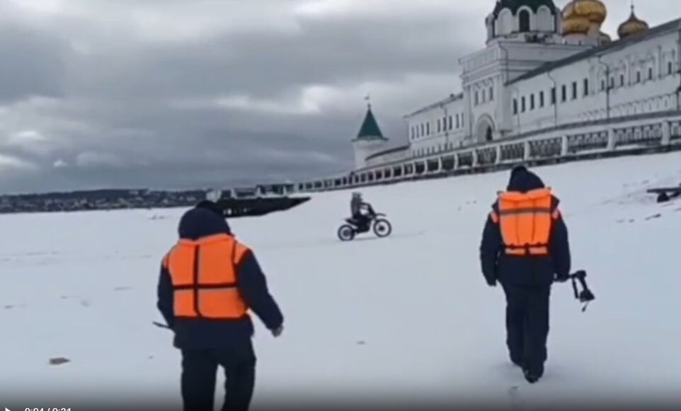 Любитель адреналина выехал на реку Кострому В Костроме поймали мотоциклиста, который гонял по подтаявшему льду у Ипатьевского монастыря. Подробности сообщает пресс-служба ГУ МЧС России по Костромской области. «Вездеходы были. Легковые авто были. Мотоциклистов на льду увидели впервые», — прокомментировали ситуацию сотрудники ведомства. Инспекторы пояснили, что в районе Ипатьевского монастыря они заметили молодого человека, который пытался переехать реку на питбайке. Выяснилось, что транспортное средство у водителя не очень исправно. По мосту мужчина не рискнул ехать, поэтому отправился по льду, дабы не создавать проблем автомобилистам. И ничего, что лед сейчас очень тонкий и крайне опасный. Сотрудники МЧС предупредили костромичей, что выезжать на лед на любой технике запрещено, если это не специальная переправа. За нарушение предусмотрен штраф в размере до пяти тысяч рублей.