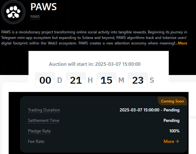 Ранее в официальном дискорд канале Paws, подтвердили дату листинга Paws - 18 марта. Об этом я рассказывал в нашем телеграм канале - https://t.me/mir_tapalok