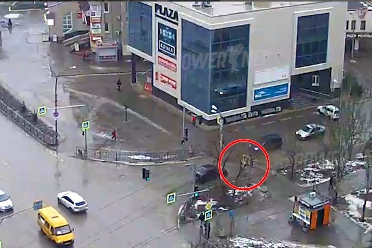 В Волжском камера засняла наезд автомобиля на женщину у ТЦ Plaza