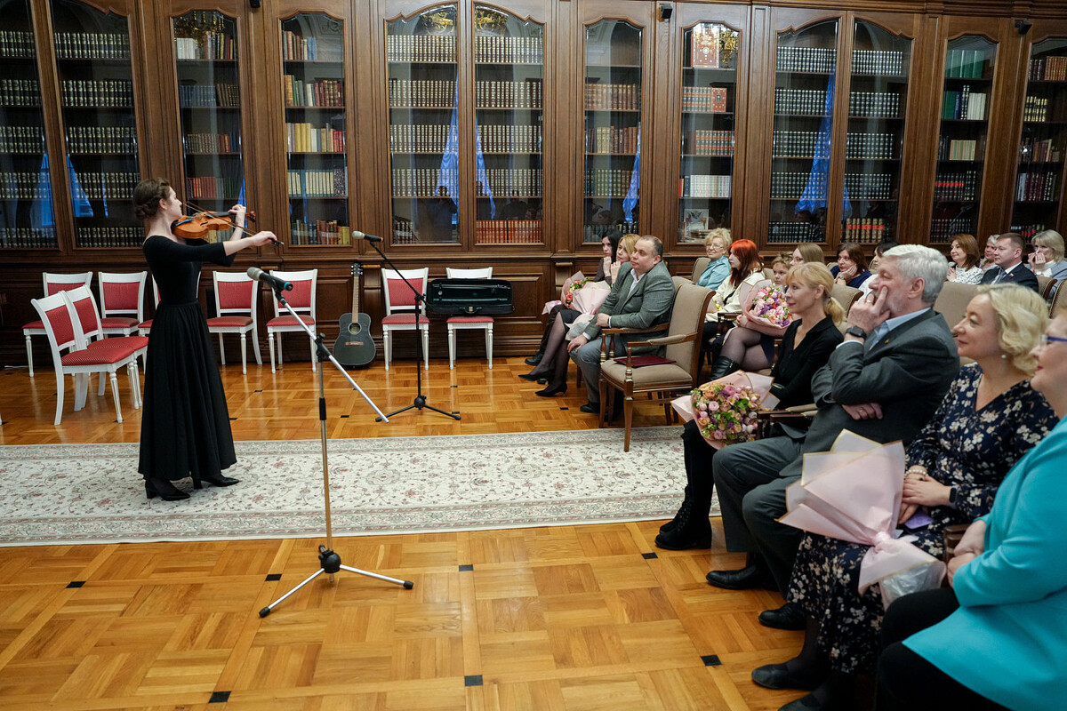 В Мариинском дворце в четверг, 6 марта, чествовали жен мобилизованных из Ленинградского полка, шефство над которым взяло Законодательное собрание. С приближающимся Международным женским днем жен участников спецоперации поздравил председатель ЗакСа Александр Бельский. Он пожелал им здоровья, счастья, благополучия, и чтобы в их сердцах всегда была любовь и весна. «Для ваших мужей, которые находятся на передовой, самое главное – знать, что вы ждете их дома, что дома все в порядке, что, когда они вернутся, вы с распростертыми объятиями обнимете их, поцелуете и согреете», – сказал Александр Бельский. В подарок жены получили не только цветы, но и театральную постановку, в которой сыграли студенты второго курса Российского государственного института сценических искусств мастерской народного артиста России из Мариуполя. «Половина курса, действительно, с новых территорий, а другая – со всей России. Но на курсе, как и в театре, они одно целое – одна семья, не различить, кто на общих основаниях