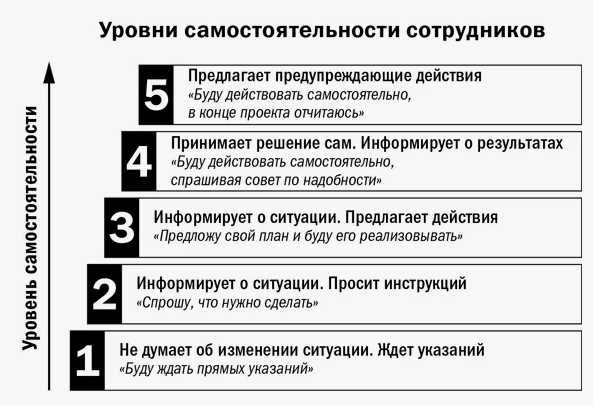 В одной из классических статей о менеджменте «Кому достанется обезьяна» выделяется пять уровней самостоятельности.